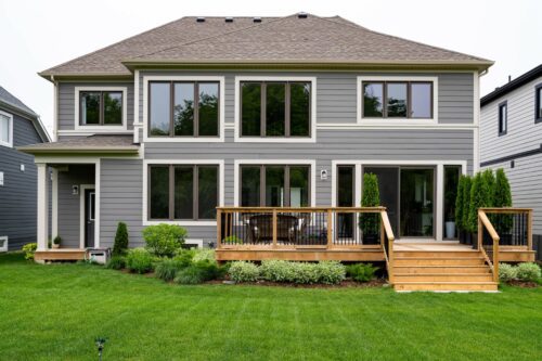- Stunning great-room with two storey windows.