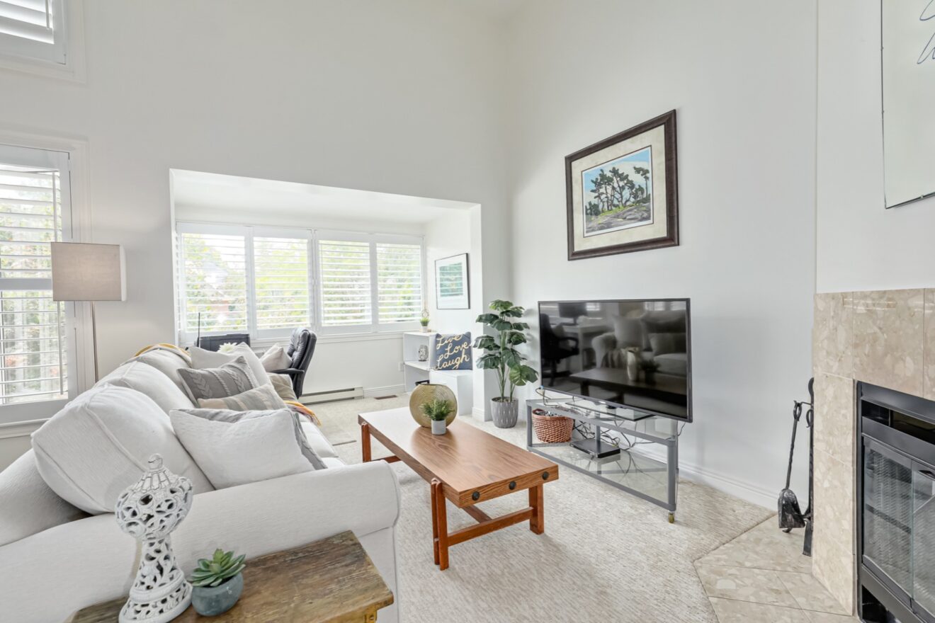 Live in the heart of downtown Collingwood! Don’t miss this opportunity to own a unique multi-level 2 bedroom, 2 bath condominium on a charming tree lined street. Filled with natural light, the open concept living / dining room has vaulted ceilings, a cozy fireplace, and custom California shutters throughout. The kitchen overlooks the dining / living room area, has a convenient pantry, granite countertops, stainless steel fridge and stove (2019). This main floor is perfect for entertaining your guests. The spacious two bedrooms each have ensuite privileges. The primary bedroom, has ample closet space and leads to a private deck ideal for enjoying the morning sun while sipping your morning coffee. This very quiet residential building has on site laundry, storage lockers for each unit and TWO designated parking spaces. Just steps to restaurants, threatres, art galleries, library, cafes. Close to waterfront, trails and the ski hill. You can’t beat this location!